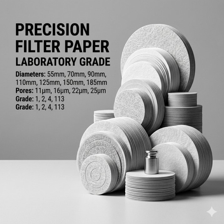 Filter Paper is a high-quality laboratory consumable used for separating solids from liquids during filtration. It is widely used in chemistry labs, microbiology, and industrial applications for precise and efficient filtration.