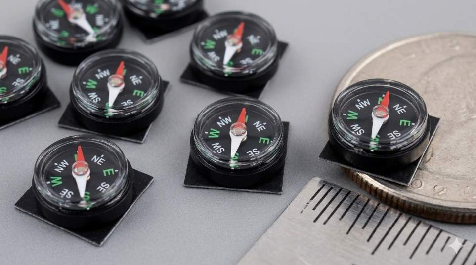 A small compass allows precise observation of magnetic field direction, especially in experiments involving coils, magnets, and current flow.